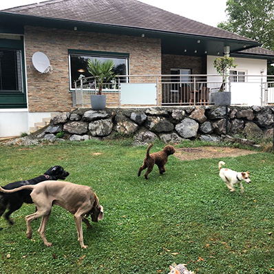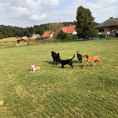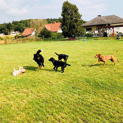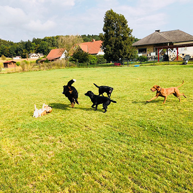 Unser liebevolles Hundehotel, inklusive Vollbetreuung und Rahmenprogramm, entspricht den höchsten, modernsten Standards. Um diesen Ansprüchen gerecht zu werden, betreuen wir nur eine geringe Anzahl von Hunden. Die Unterbringung erfolgt entweder in unserem Privathaus oder in einem unserer mit größter Sorgfalt eingerichteten Blockhäuser. Wir haben unseren Traum verwirklicht und eine Wohlfühloase für Hunde errichtet. Wollen Sie, dass ihr tierischer Begleiter einen Aufenthalt mit Liebe, Abenteuer, Spaß und Luxus genießt, dann sind Sie bei uns genau richtig. Sie können ihren Urlaub in Ruhe und ohne Sorgen planen, weil ihr Vierbeiner bei uns bestens aufgehoben ist, dafür garantieren wir! Unser Anwesen mit einer Fläche über 20.000 m² ist komplett eingezäunt, die Hunde bewegen sich am gesamten Objekt frei. Zusätzlich bieten wir unseren tierischen Gästen vielfältige abenteuerliche Beschäftigungsmöglichkeiten an.