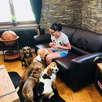Hier ist ihr Hund in besten Händen. Ich leite das Hundehotel vor Ort und sorge für einen gelungenen Aufenthalt mit eingehender Betreuung. Als ihre Ansprechpartnerin für Organisation und individuelle Wünsche, wie z.B. Futtergewohnheiten, sportliche Vorlieben oder zusätzliche Wohlfühlrituale, stehe ich jederzeit gerne zur Verfügung.